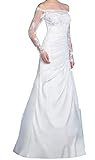 Jetzt kaufen bekommen eine günstige Brautkleid aus Taft mit langen Spitzenärmeln Kurzschleppe, A-Linie creme / ivory Gr. 42 mit günstigen Preis